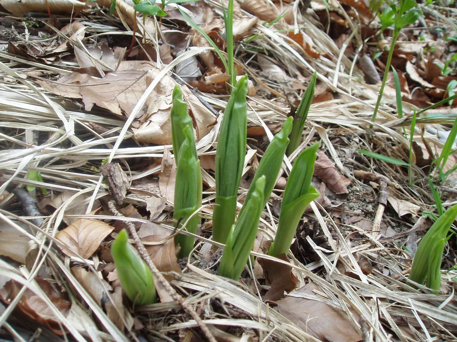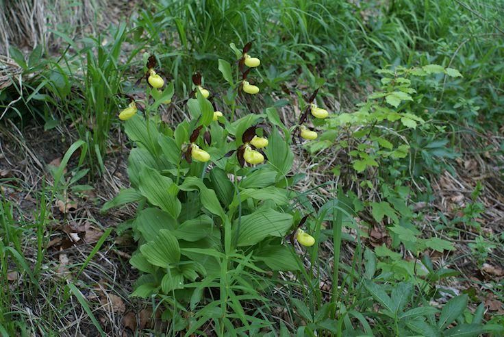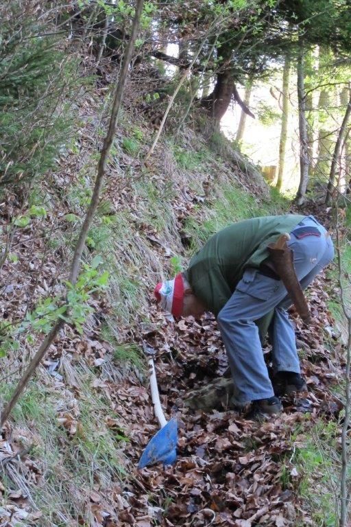 Der steile abgelegene und recht urtümliche Wald bietet ein kleines Eldorado für den Pflanzenliebhaber. Bevor wir wie üblich mit dem Ausbessern des schmalen Weges begannen, galt unser Augenmerk den Frauenschuhstandorten. Stossen die ersten Sprösslinge der grössten Orchideenart schon aus dem Boden?