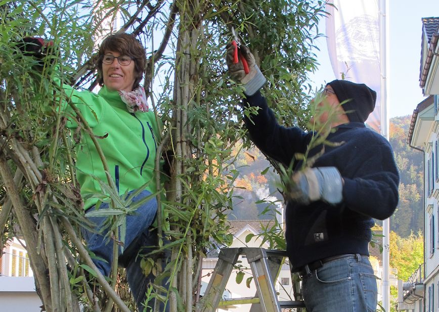 Mitglieder des Naturschutzvereins Ebnat-Kappel und Nesslau haben im «Bahnhofpärkli» Ebnat-Kappel die Weidenskulpturen in Form gebracht.