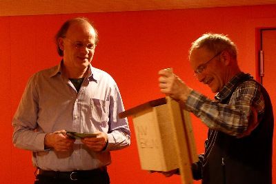 Ein feiner Apéro stand bereit, als die ersten Mitglieder eintrafen. Einige nutzten ausserdem die Zeit für einen kleinen Imbiss. Die Stärkung war vielleicht auch nötig, weil grosse Diskussionen bevorstanden. Um 20 Uhr eröffnete Andreas Weber die Hauptversammlung. Im Rückblick streifte er die vielen Aktivitäten vom letzten Vereinsjahr. Erwähnenswert ist sicher der Seeben-Weiher in Ennetbühl. Die Sanierung des verlandeten Weihers ist abgeschlossen. Somit steht der Teich für die bevorstehende Laichwanderung den Grasfröschen wieder zur Verfügung. Im Gegensatz dazu zeigte die Jahresrechnung, dass immer weniger Geld zur Verfügung steht. Neu beliefert der Kantonalverband BirdLife die Mitglieder mit der professionell gestalteten Fachzeitschrift «Sperber». Dies hat einen erheblichen Kostenschub verursacht, sodass die Mitgliederbeiträge angepasst werden müssen. Nach einer kurzen Diskussionsrunde war man sich einig, den Jahresbeitrag um 10.- Franken zu erhöhen. Leider muss der Verein auch in diesem Jahr wieder einen Rücktritt im Vorstand hinnehmen. Paul Egli hatte grosse Arbeit für den Verein geleistet. Er schrieb die Protokolle und viele Zeitungsberichte, gestaltete einen gelungenen Werbeflyer, verfasste die Jahresrückblicke und kreierte schöne Plakate für unsere Anlässe. Dazu hielt er unsere Homepage immer auf dem neusten Stand. Andreas Weber verabschiedete den Aktuar Paul Egli und überreichte ihm als kleines Dankeschön einen Vogelnistkasten und einen Pflanzengutschein. Er wurde mit einem herzlichen Applaus verabschiedet.