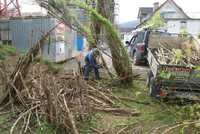 Während frohes Schneiden angesagt war, florierten muntere Diskussionen über dies und das. Schon bald regte der vor einigen Tagen in den Toggenburger Medien erschienene Bericht “Als Wattwils Einhorn noch lebte” zu ganz speziellen Wortspielen an. Da wird doch wirklich an der Existenz des lebenden Einhorns gezweifelt. Also, bei aller Bescheidenheit, aber im «Bahnhofpärkli» Ebnat-Kappel können alle ein lebendes Einhorn bestaunen. Wohl steht es im Moment ein wenig schlank da, weil es sich für den Winterschlaf gerüstet hat, aber bereits im nächsten Frühling wird es sich wieder mit seinem neuen Kleid lebendig präsentieren. Natürlich hatte auch unser Einhorn seine Krisen mit der Folge, dass wir im Frühjahr 2015 viele Weiden ersetzen mussten. Zeitgleich sind auch bei der Kapelle bis zu fünf Meter hohe Weiden gepflanzt worden. Dank des regelmässigen Wässerns in den heissen Sommermonaten gediehen alle Stecklinge sehr gut. Daher konnte jetzt auch im Turmteil der Kapelle das restliche dürre Holz entfernt werden.