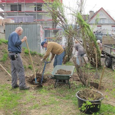 Da kümmerten sich nämlich andere Mitglieder des Vereins um die Weidenskulpturen. Infolge eines Materiallagers war das Einhorn im letzten Herbst schlecht zugänglich und konnte nicht gepflegt werden. Weiter nicht schlimm, denn wenn mehr als die Hälfte der Weiden ersetzt werden muss, ist der Frühling zum bewurzeln der Äste der bessere Zeitpunkt. Nun begann ein heiteres Lochgraben, Einpflanzen, Anbinden und Formen des Einhorns. Auch an der Kapelle ersetzte man einige Weiden. Flott ging es voran, sodass während der chüschtigen Zwischenverpflegung nahezu das vollendete Vorhaben bestaunt werden konnte. Die Figuren, welche das Wappenbild von Ebnat-Kappel darstellen, stehen nun etwas schlank in der Wiese. Dies wird sich jedoch mit dem Blattaustrieb bald ändern. Auf jeden Fall ist das alte, dürre Holz weg und man wird das Gefühl nicht los, dass die frisch bepflanzten Skulpturen neugierig in die Zukunft schauen. Wir auch!