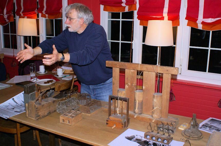 Schlussendlich belohnte uns der Biologe und Naturfotograf René Güttinger mit einem sehr speziellen Vortrag: Innovativ, nützlich, skurril – Mäusefallen gegen lästige Plagegeister. Nach dem lehrreichen theoretischen Teil mit eindrücklichen Fotos folgte die Demonstration der sehr alten Mäusefallen.